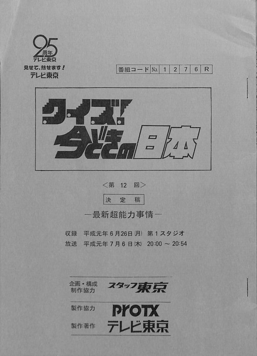 - Broadcaster : Fuji Television Nippon Educational Televisionwork, Inc.