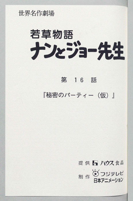 主な出演 : (ナン),(ジョー),(ベア先生),(ナット),(トミー),(デミ),(デーズィ),(ネッド),(スタッフィ),(ジャック),(ロブ),(テディ),(ダン),(サイラス),(エーシァ)【若草物語 ナンとジョー先生】本作は成長したナン、アニー・ハーディングが、アメリカの・マサチューセッツ州コンコードの郊外にある『プラムフィールド』と呼ばれる学園を訪れ、彼女の幼い頃の回想から始まる。プラムフィールドは『ジョー先生』と、ジ