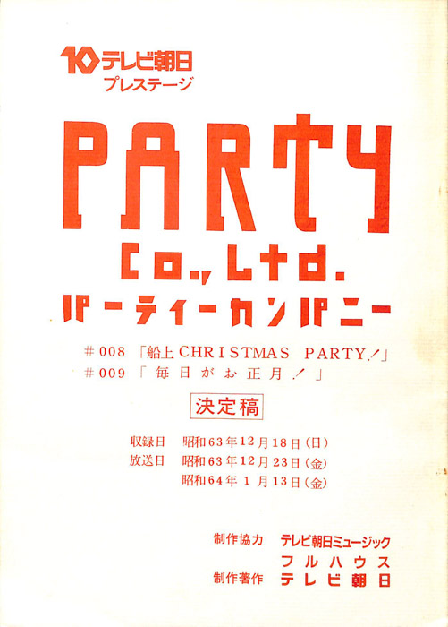 主な出演 : 桂文珍,田代まさし,野沢直子,山崎尚子,水野晴郎,バブルガム・ブラザーズ,ハナ肇,植木等,谷啓,淡路恵子,中尾ミエ,小野ヤスシ,南伸坊,河野洋