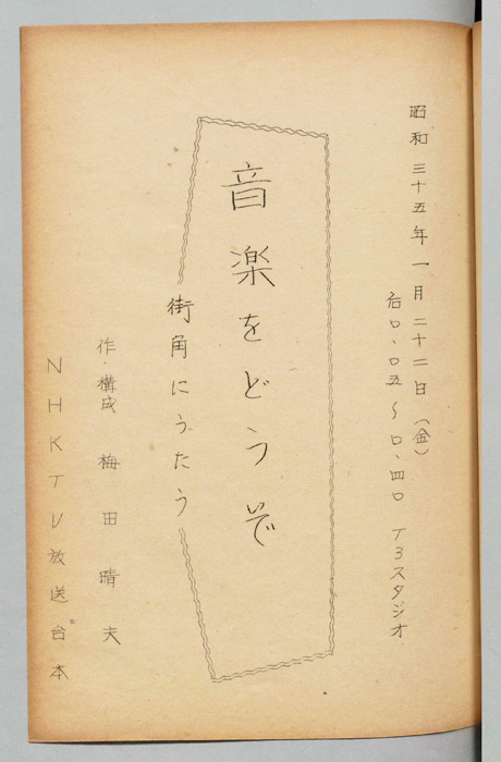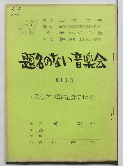 主な出演 : 黛敏郎,白南準,佐藤慶次郎,小野洋子,別宮貞雄,諸井誠,一柳慧,井川比佐志,久保田アナウンサー
