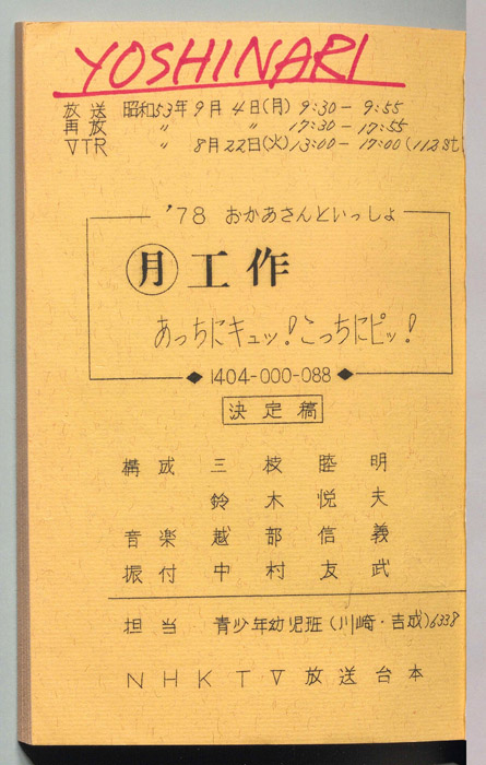 主な出演 : 部久義,(工作)木村裕一,(アニメーション)岩井丈児,(アイデア)枝常弘,加藤晃,木村裕一