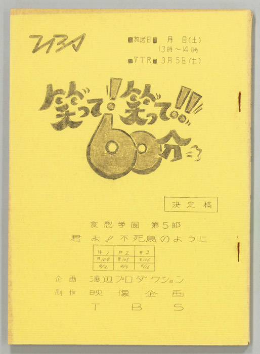 主な出演 : ミヤコ蝶々,西村晃,由美かおる,谷啓,久里千春,あいざき進也,西真澄,西川峰子,小瀬格,緒形拳- 作家 : 平岩弓枝