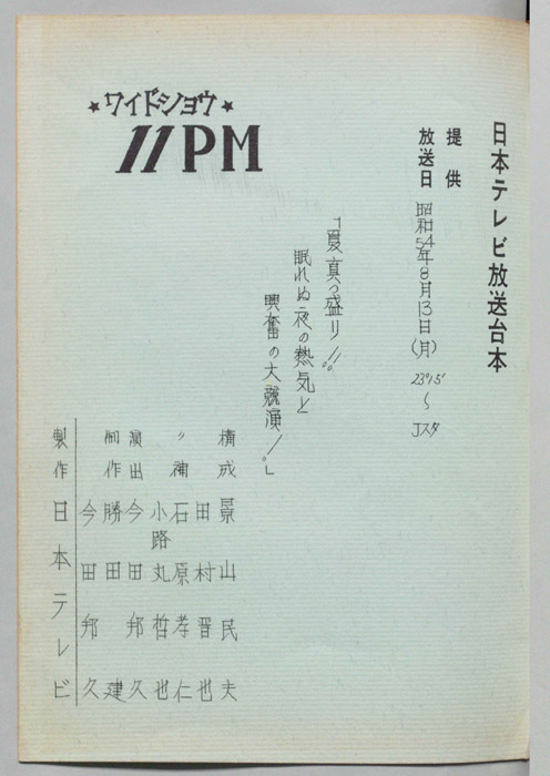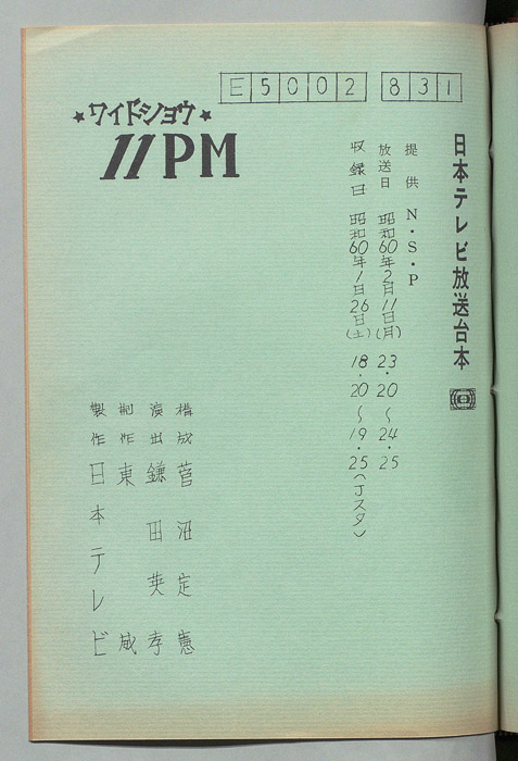 主な出演 : 大橋巨泉,松岡きっこ,いそのえいたろう,藤田佳の実,久里洋二,杉原淳とニュー・サラブレッズ,豊原路子,永田哲朗,渡辺千代,東郷健,武藤隆夫,三木のり平,片寄京子,丸尾長顕,松尾久枝,吉村千万子,(ナレーター)福留功男