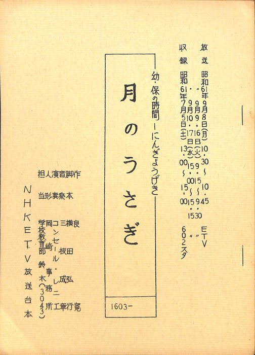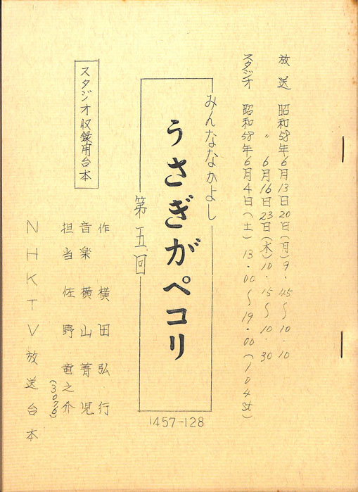 主な出演 : 国守平,(警官A,B),(ゲストA:男),(ゲストB:女),(うなばら)佐藤正治,(オスウサギ)金丸淳一,(子供ウサギ),(ガチョウ達),(スタッフA,B),(フロアディレクター)小林通孝【ひみつのアッコちゃん】加賀美あつ子は小学5年生の女の子。いつも大事に持っていた鏡を割ってしまい、庭に鏡のお墓を作って埋めた。その晩、鏡の妖精が現れ、今まで大切にしてくれたお礼にと、魔法のコンパクトをプレゼントする。そ
