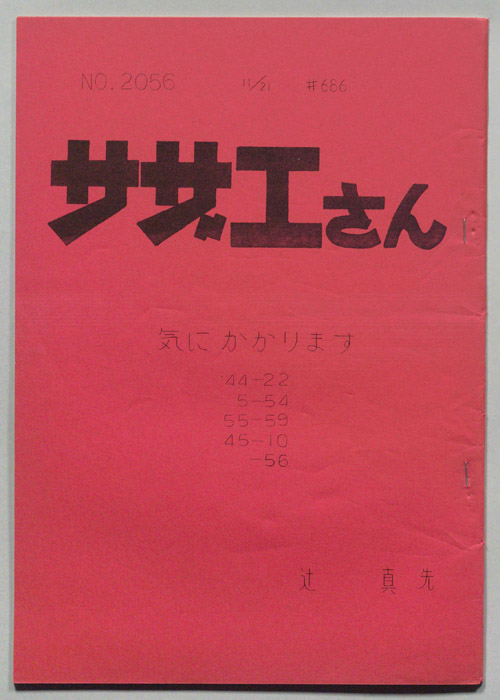 主な出演 :東京の静かな住宅地に住む「磯野家」には、父・波平、母・フネ、長女・サザエ、長男・カツオ、次女・ワカメが周囲の人々と共に、賑やかに暮らしていた。後にサザエはフグ田マスオと結婚して、長男・タラオが誕生し三世代家族として、昭