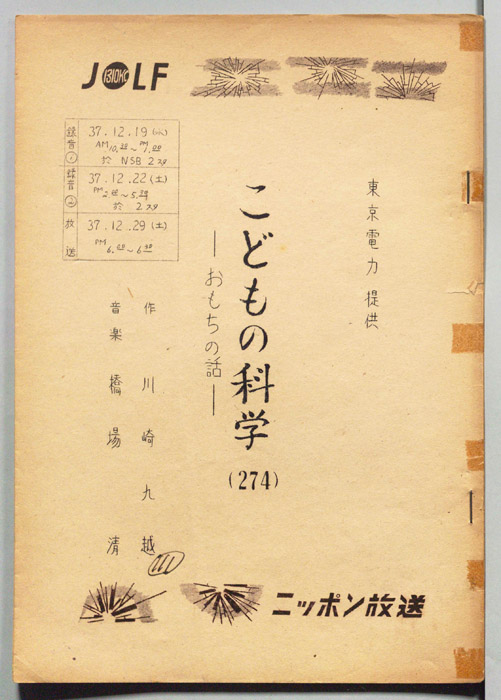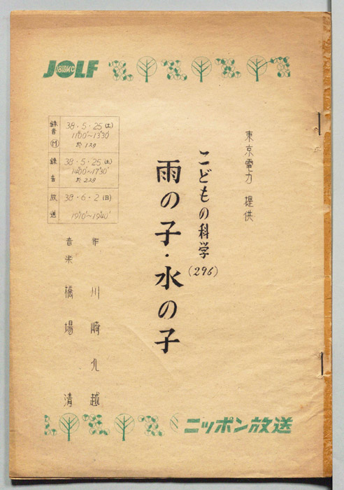 主な出演 : 平井真樹男,塚田兼久,平尾頼信,楢林和男,楠義孝,三木美知子,津島道子,大阪放送劇団,大阪放送児童劇団,花柳有洸社中,大阪放送合唱団,(演奏)大阪放送管弦楽団,(ハモンド演奏)中谷歌子