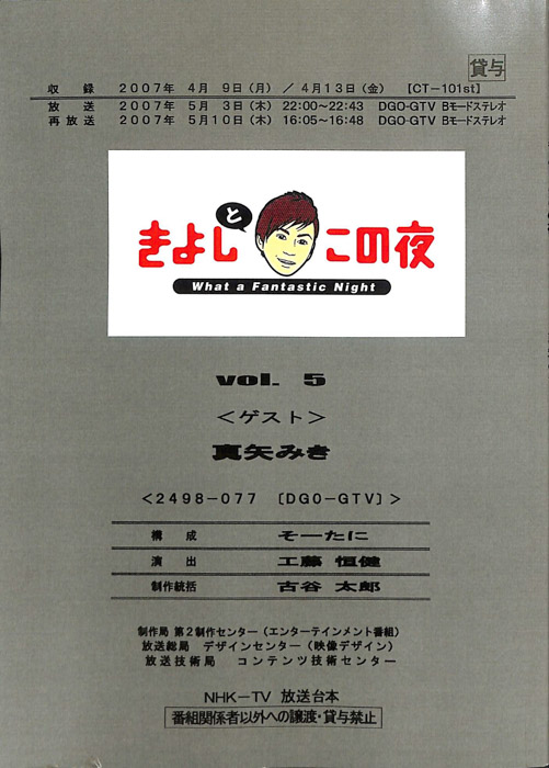主な出演 : 松本明子,村松邦洋,(ナレーター)木村匡也,(スペシャルゲスト)田代まさし