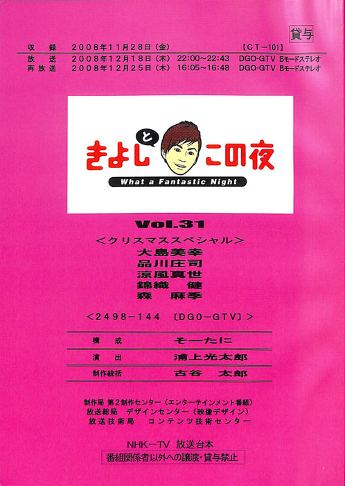 主な出演 : 松本明子,松村邦洋,やしきたかじん