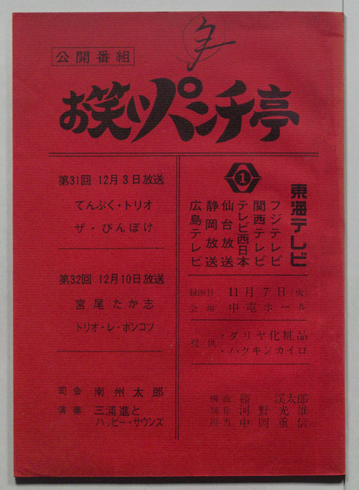 主な出演 : てんぷく・トリオ,ザ・ぴんぼけ,宮尾たか志,トリオ・レ・ポンコツ,(司会)南洲太郎