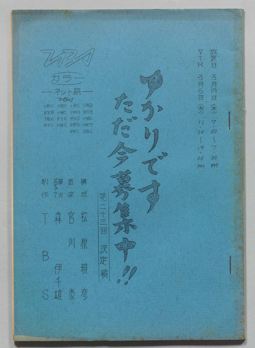 - 作家 : なべおさみ,和泉二郎,佐々木守,遠藤淳