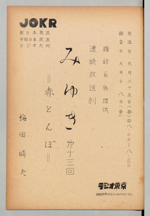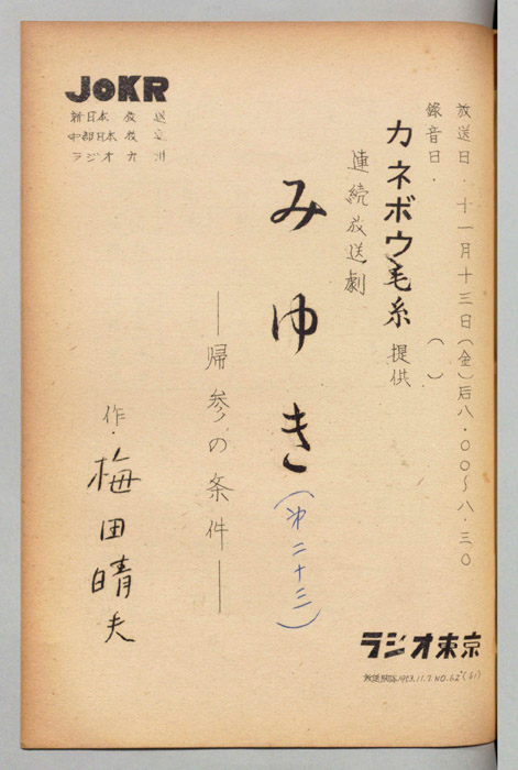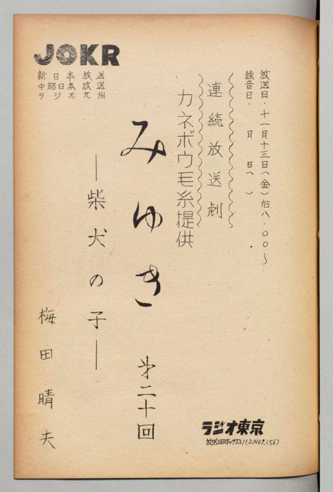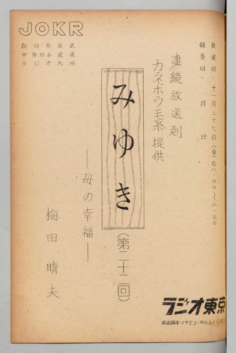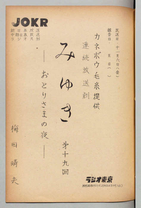 - 放送局 : ラジオ東京