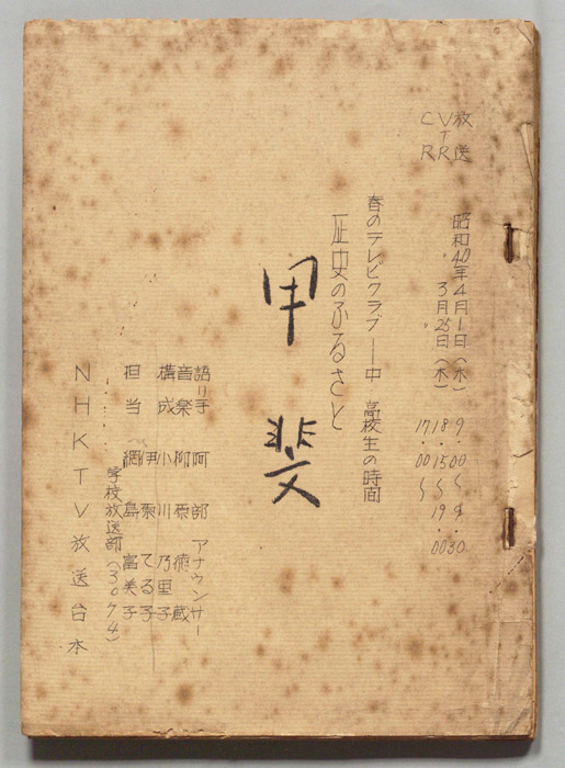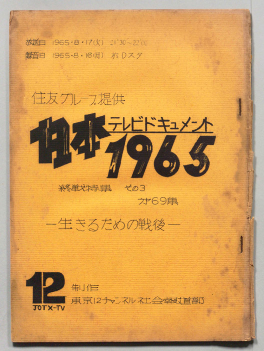 主な出演 : 宮本常一,加太こうじ,(司会)前田武彦,長尾恵美子アナウンサー,(ナレーター)長尾恵美子アナウンサー