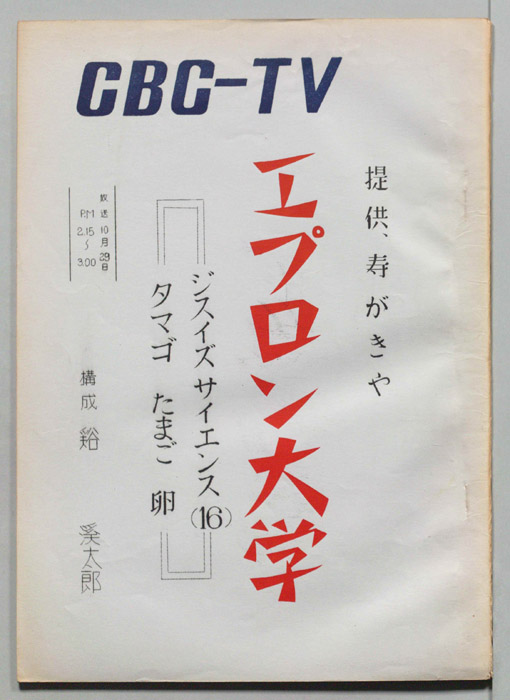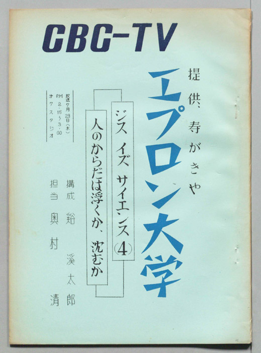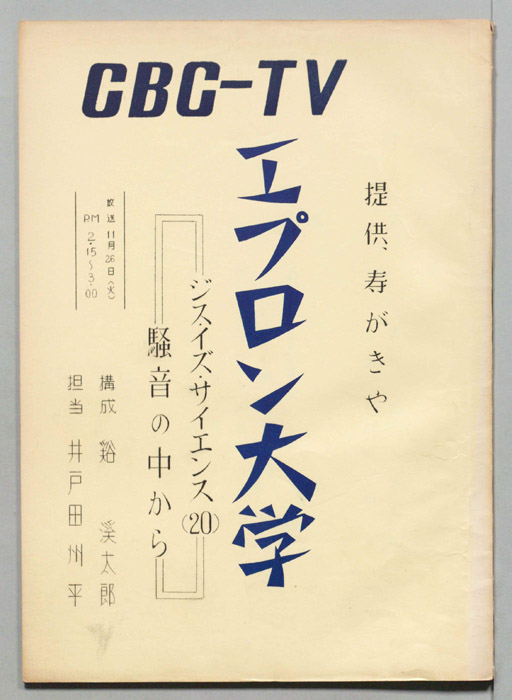 主な出演 : 石川弘義,田伏中子,(司会)前田武彦,長尾恵美子アナウンサー,(ナレーター)長尾恵美子アナウンサー