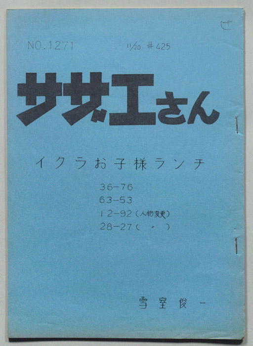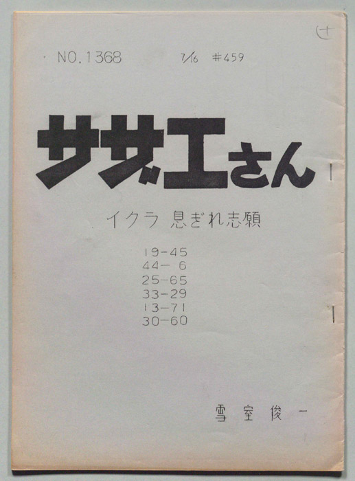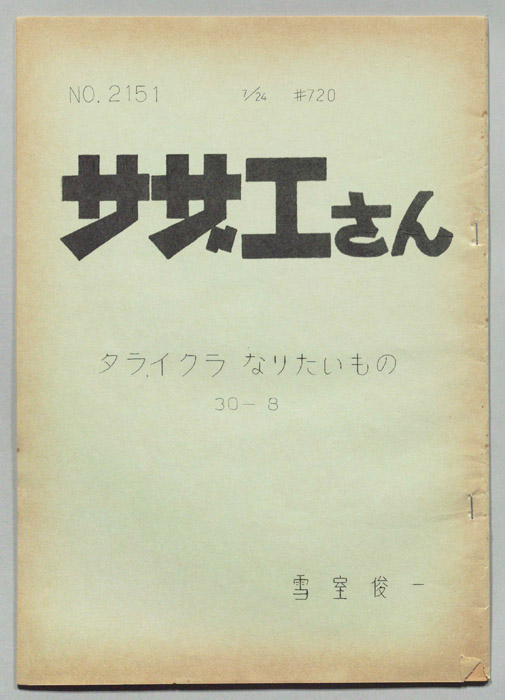 主な出演 : 加藤みどり,高橋和枝,野村道子東京の静かな住宅地に住む「磯野家」には、父・波平、母・フネ、長女・サザエ、長男・カツオ、次女・ワカメが周囲の人々と共に、賑やかに暮らしていた。後にサザエはフグ田マスオと結婚して、長男・タラオが誕生し三世代家族として、昭