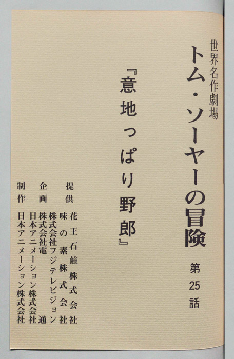 主な出演 : (トム),(シッド),(ポリー伯母さん),(メアリ),(ジム),(ハック),(ジョー),(ベン),(ベッキー),(ベッキーの母),(ドビンズ先生),(アレフレッド・テンプル),(テンプル氏(アルフレッドの父)),ウォルター(テンプル家の下男))【トム・ソーヤーの冒険】わんぱくでイタズラ好きの少年『トム・ソーヤー 』は両親を早くに亡くし、伯母『ポリー』と共にアメリカのミシシッピ川沿いにあるセントピーターズバーグという村で、親友の『ハック』や弟の『シッド』と