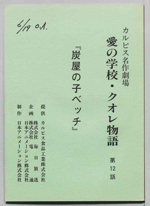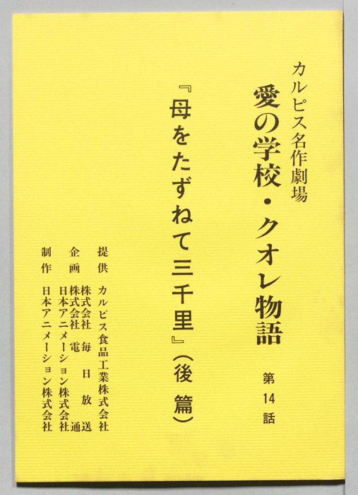 主な出演 : エンリコ・ボッティーニ),(ペルボーニ先生),(マルコ),(マルコの母),(出稼ぎの老人),(メキーネス氏),(メキーネス夫人),(医師),(荷馬車隊の親方),(荷馬車隊の馬方A),(荷馬車隊の馬方B),(邸の家政婦),(出稼ぎ人A