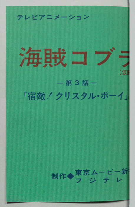 主な出演 : コブラ)野沢那智,(バッド),(ドグ)木原抄二郎,(パンプキン),(サラマンダー)柴田秀勝,(エル・ロデス),(ペドロ),(モラレス),(エル・スカイマン),(ガタンガ),(ホステス),(異星人A,B),(マダム),(夫),(チェッカー【スペースコブラ】多くの財宝や希少品をスマートに盗みだす宇宙海賊「コブラ」は普段はとぼけた言動の多いひょうきんな性格の三枚目だが、ここ一番の場面では義理や友情を重んじるハードボイルドな男となり、どんな困難にも勇敢に立ち向かう。生