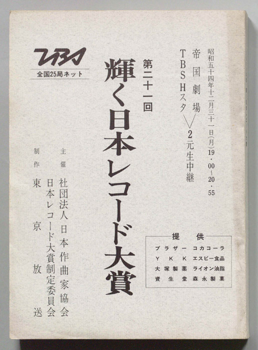 主な出演 : ゴダイゴ,チャック・マンジョーネ,(司会)長門裕之,南田洋子