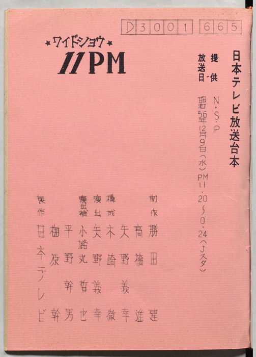 主な出演 : 愛川欽也,かたせ梨乃,今野雄二,飯塚文雄,榎本了壱,山田正則,稲川淳二,サンドラ