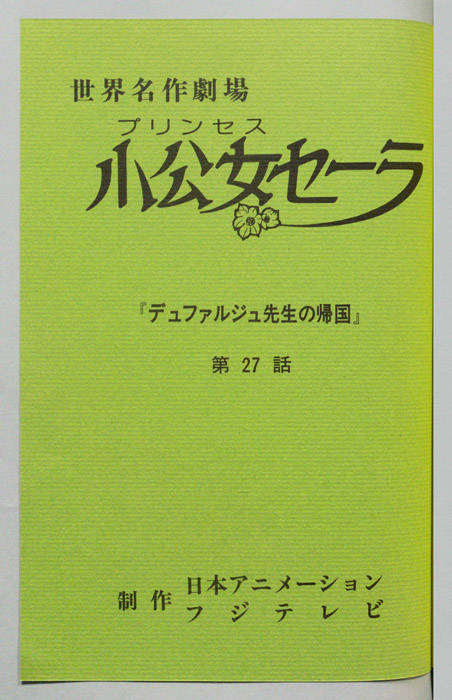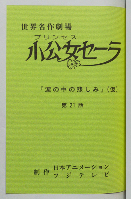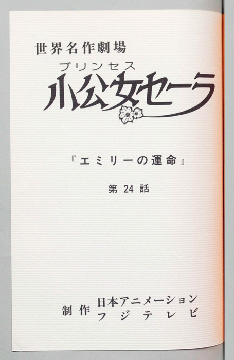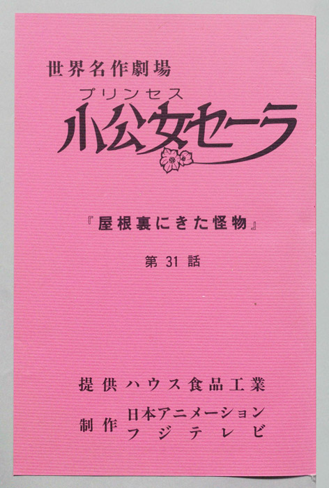 主な出演 : [セーラ・クルー)島本須美,(ミンチン院長)中西妙子,(アメリア先生)梨羽由記子,(ピーター)坂本千夏,(ベッキー)鈴木みえ,(ロッテイ)渡辺菜生子,(アーメンガード)八百板万紀,(ラビニア)山田栄子,(ジェシー)中野聖子,(ガ