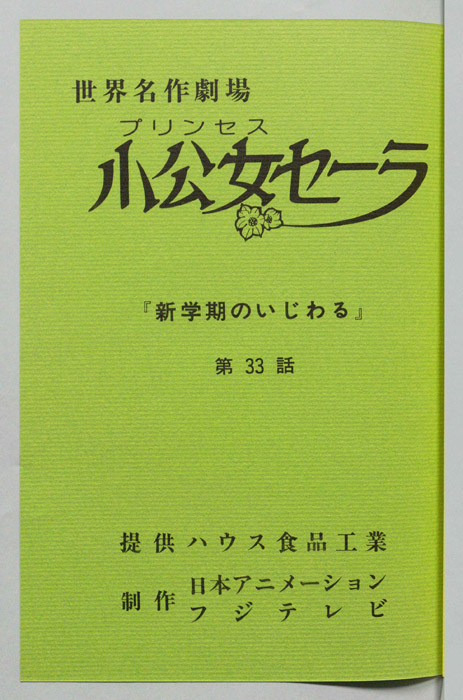 主な出演 : [セーラ・クルー)島本須美,(ミンチン院長)中西妙子,(アメリア先生)梨羽由記子,(ピーター)坂本千夏,(マリエット)高木早苗,(ラピニア)山田栄子,(ガートルード)佐々木るん,(ジェシー)中野聖子,(アーメンガード)八百板万紀,(ロ