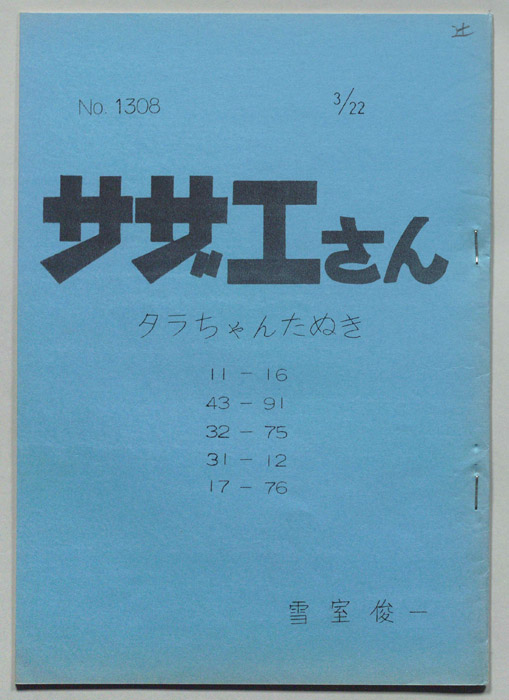 主な出演 :東京の静かな住宅地に住む「磯野家」には、父・波平、母・フネ、長女・サザエ、長男・カツオ、次女・ワカメが周囲の人々と共に、賑やかに暮らしていた。後にサザエはフグ田マスオと結婚して、長男・タラオが誕生し三世代家族として、昭