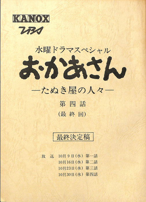 主な出演 : 森光子,竹下景子,小泉今日子,小林薫,渡辺えり子,イッセー尾形,岡本麗,田中春男,野村昭子,ベンガル,左とん平,河合美智子,奥野匡,水木薫,徳永広美,渡辺富美子,田武謙三,近藤花恵,いかりや長介