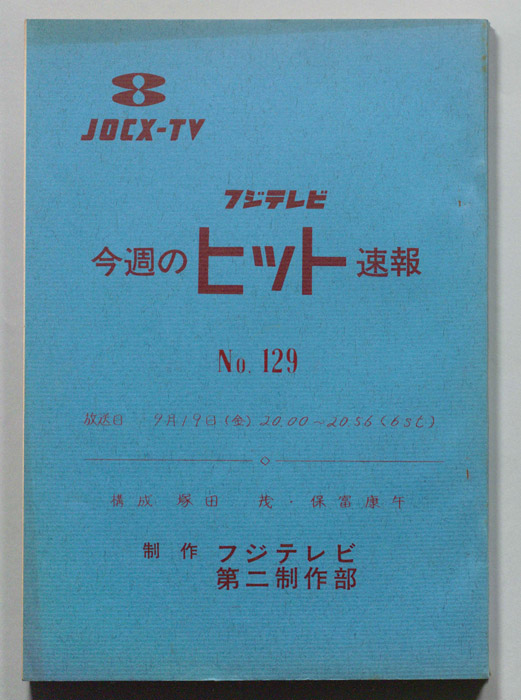 主な出演 : [フランキー堺,森田健作,伴淳三郎,ミヤコ蝶々,倍賞千恵子,江美早苗,ピンキーとキラーズ,長沢純,宮城千賀子,丹下キヨ子,高橋勝とコロラティーノ,大野しげひさ,牧伸二,人見きよし,野添ひとみ,月の家円鏡,コント0番地,]- 作家 : (シリーズ構成・脚本)吉岡たかを