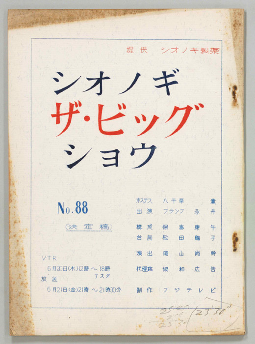 主な出演 : フランク永井,ペギー葉山,藤本二三代,新川二郎,倍賞千恵子,金井克子,アントニオ古賀,玉川良一,原田信夫とファイブ・キャラクターズ,スターダスト・ガールス- 作家 : 西野晧三