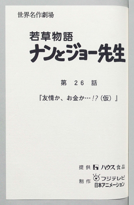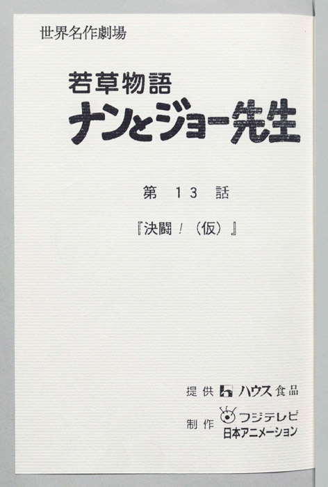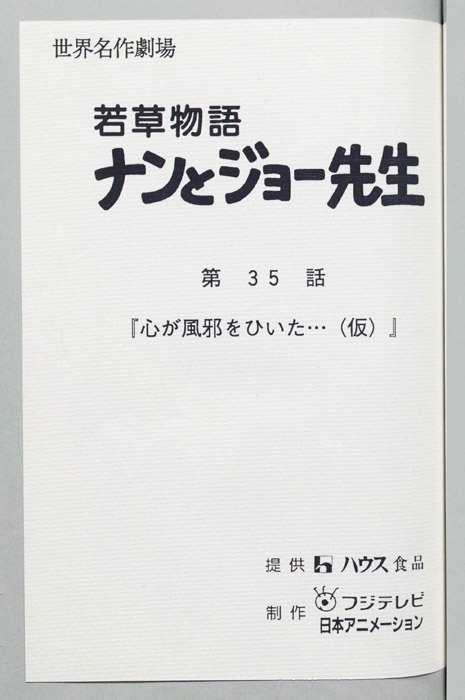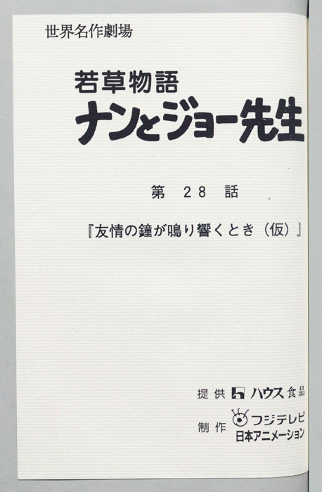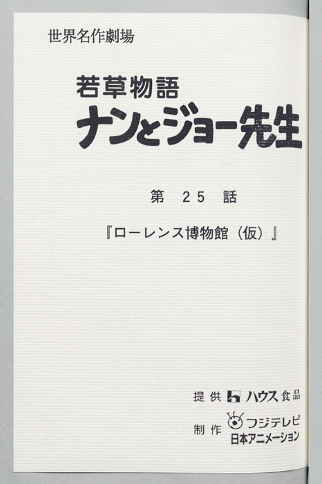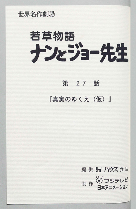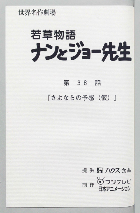 主な出演 : (ナン),(ジョー),(ベア先生),(ナット),(トミー),(ロブ),(テディ),(デーズィ),(ネッド),フランツ),(エミル),(エーシャ),(その他駅の人)【若草物語 ナンとジョー先生】本作は成長したナン、アニー・ハーディングが、アメリカの・マサチューセッツ州コンコードの郊外にある『プラムフィールド』と呼ばれる学園を訪れ、彼女の幼い頃の回想から始まる。プラムフィールドは『ジョー先生』と、ジ