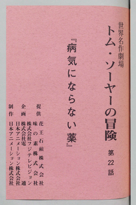 主な出演 : (トム・ソーヤー),(ポリー),(シッド),(肥った男),(ハック),(ベン),(男),(女A),(男B),(老婦人),(ミッチェル),(インジャン・ジョー),フロントの男),(ウエイター),(メアリー),(老人)【トム・ソーヤーの冒険】わんぱくでイタズラ好きの少年『トム・ソーヤー 』は両親を早くに亡くし、伯母『ポリー』と共にアメリカのミシシッピ川沿いにあるセントピーターズバーグという村で、親友の『ハック』や弟の『シッド』と