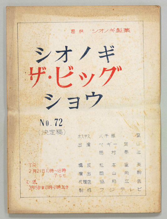 主な出演 : ペギー葉山,斉藤達雄,由紀真,戸川昌子,植草甚一,千葉信男,原田信夫とファイブ・キャラクターズ,パルサミーノダンサーズ