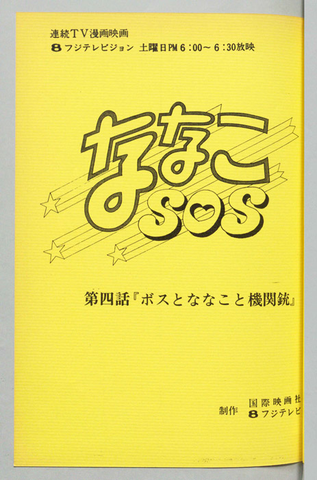 主な出演 : [ななこ:木藤玲子,四谷:三ツ矢雄二,飯田橋:古谷徹,コンビニエンジ:龍田直樹,ボーニ,子分たち,女生徒A,スケ番,体育教師,体育コーチ,校長先生,その他]【ななこSOS】自称天才科学者『四谷永一郎』は、漫画家志望の級友『飯田橋博士』をモルモット代わりに超能力者を生み出す実験を行っていたが、空から突如として『ななこ』という少女が降ってくる。ななこは記憶を失っていたが、超能力によって『ス
