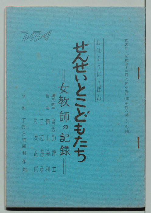 主な出演 : 金沢喜市,神谷かず(旧姓赤松),小林桂樹,栗原なお,ボニージャックス,伊藤じゅん子(旧姓並木),山田とき,山田和子,平野婦美子,椎名政子,村岡藤市,他13名,(キャスター)小泉博,小林容子,高野昭平- 作家 :