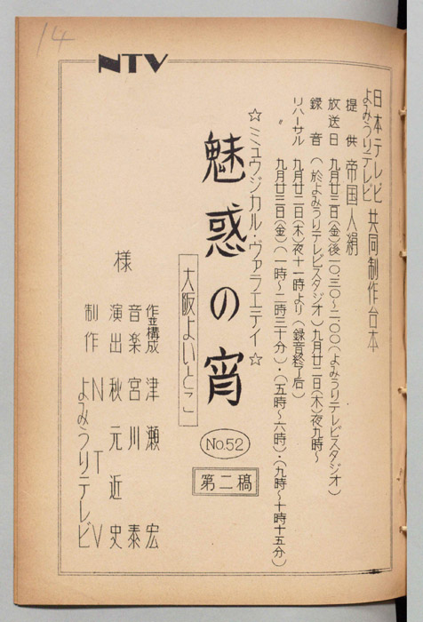 ,朝丘雪路,沢たまき,寄立薫,東京バレエ・グループ,高美アリサ,淡谷のり子,中村八大,道志郎,深