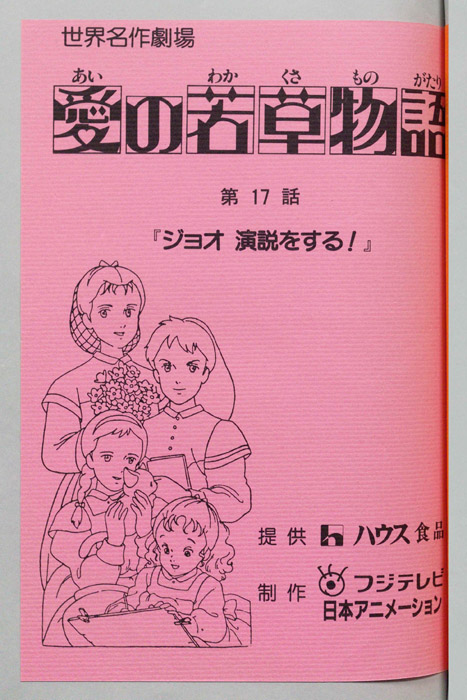 主な出演 : (メグ),(ジョオ),(ベス),(エイミー),(メアリー),マーサ),(ローリー),(アンソニー),(デーヴィッド),(ジュン),(男)共に暮らしていた。だが戦火に一家は家を失い、父の叔母マーサを頼ってニューコードに旅立つ。一家はマーサの屋敷に居候するも、ジョオが出会った青年「アンソニー」の計らいで新たに家を借り生活を始める。やがて隣りに住む「ジェームス家」に孫「ローリー」が