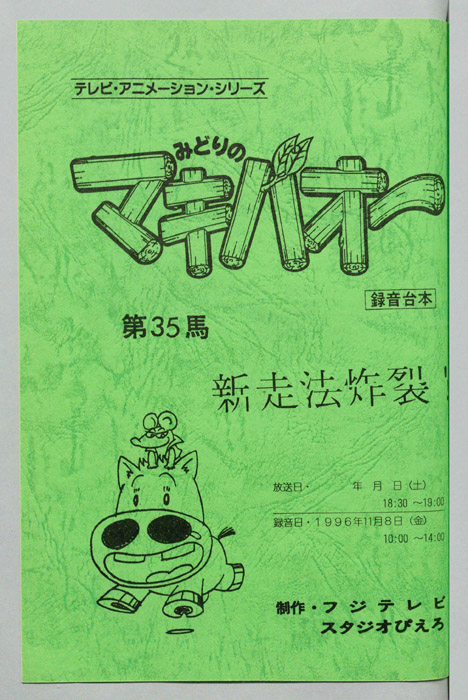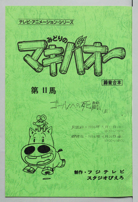 主な出演 : 殿光昭,(獣医)丸山詠二,(アナ)三宅正治【みどりのマキバオー】北海道の牧場『みどり牧場』の名馬「ミドリコ」から、まるでロバのような不思議な姿の馬「マキバオー」が生まれる。その後、みどり牧場の借金を返済する為、ミドリコが堀江牧場へ売られることになり、母