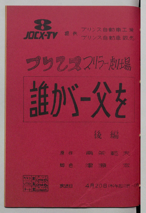 主な出演 : 天知茂,佐藤慶,藤岡琢也,三宅邦子,北林早苗,応蘭芳,美川陽一郎,梅津栄,天田俊明