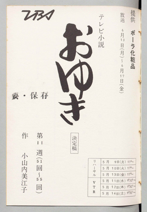主な出演 : 熊谷真実,藤田弓子,田中裕子,早川里美,和田周,山口崇,田中健,戸浦六宏,三木弘子,(ナレーター)飯窪長彦アナウンサー- 作家 : 小山内美江子