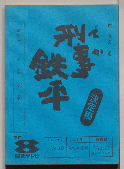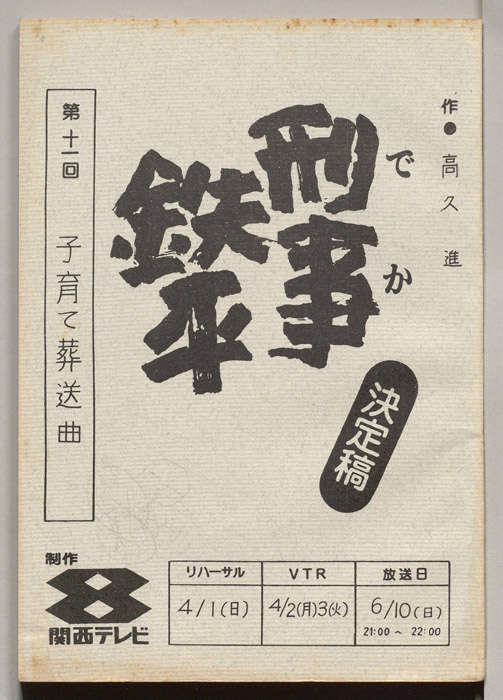 主な出演 : 田村正和,三林京子,江原真二郎,角野卓造,岡田裕介,西田健,二見忠男,西村晃,広世知子,車邦秀,日下武史,ナンシー福田,真田五郎,根岸明美,団巌,堀田真三,津村隆,白川靖雄,青砥洋,伊藤孝男,葵新連,若駒,(方言指導)元木丈陽,(語り)古今亭志ん朝- 作家 : 森脇京子