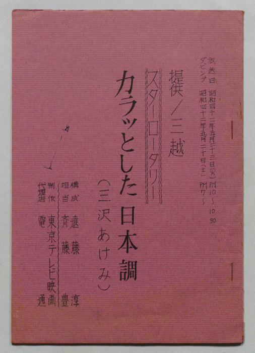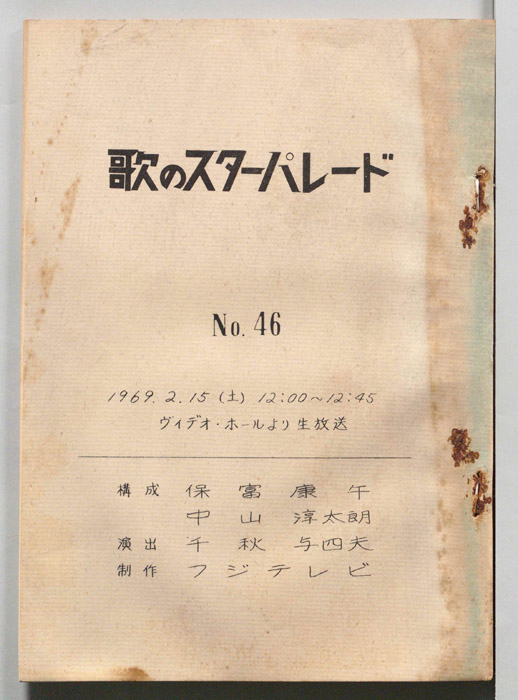 主な出演 : 村田英雄,三沢あけみ,弘田三枝子,伊東ゆかり,島和彦,金井克子,アントニオ古賀,中尾ミエ,スターダスト・ガールス,ザ・フラッシャーズ,花柳滝蔵社中,一竜斉貞鳳,藤村有弘