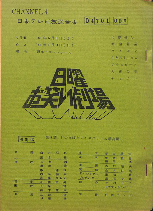 主な出演 : 三波伸介,野口五郎,近藤真彦