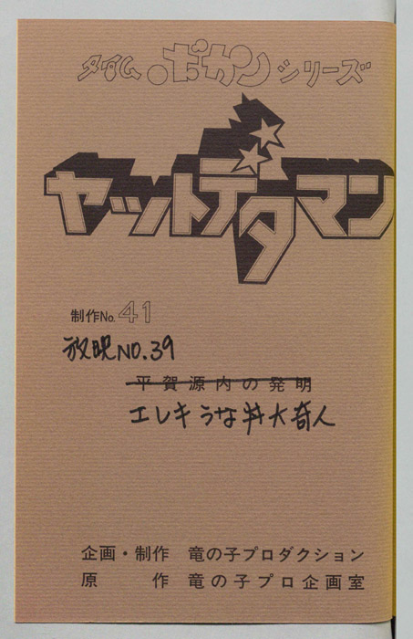 主な出演 : (時ワタル:ヤットデタマン)曽我部和行,(姫栗コヨミ)三浦雅子,(遠山金五郎)阪脩,(カレン姫)土井美加,(ダイゴロン)屋良有作,(ミレンジョ姫)小原乃梨子,(コマロ)丸山裕子,(コケマツ)八奈見乗児,(スカドン)た【ヤットデタマン】 私立探偵事務所で助手として働くワタルとコヨミの元に1000年の未来から二人の遠い子孫である『カレン姫』がタイムマシンでやってくる。タイムトラベルの目的は時空を飛び越えることができる伝説の『ジュジャク』と