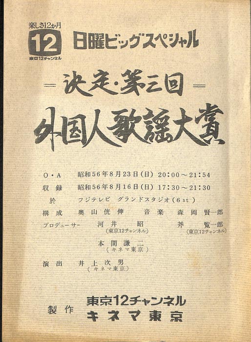 - 放送局 : 東京12チャンネル