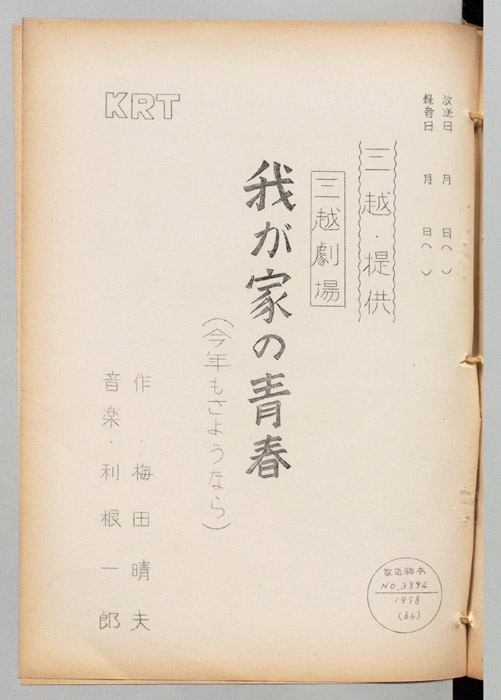 主な出演 : 雪村いづみ,堤真佐子,有光洋二,松宮五郎,久野四郎,小田切みき,田中明男,阿木愼太郎