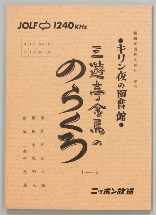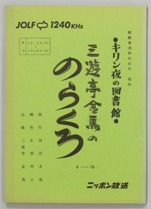 主な出演 : 渡辺伸一郎,神島二郎,三遊亭金馬,阿部一男,桜井悦子,山田愛子,藤井秀夫,(司会)前田武彦,亀谷慶子アナウンサー,長尾恵美子アナウンサー