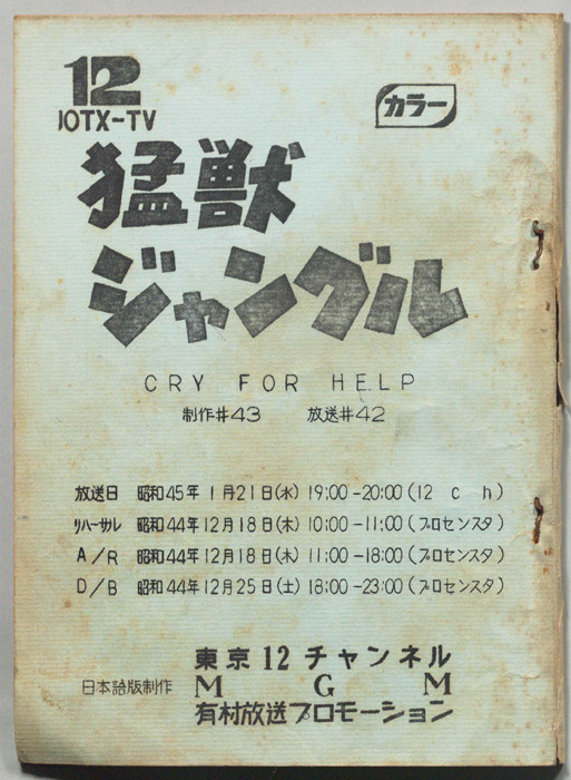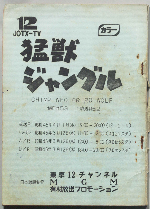 - 放送局 : 東京12チャンネル(テレビ東京)