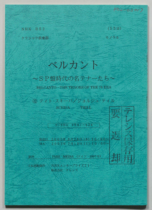 ベルカント SP盤時代の名テナー