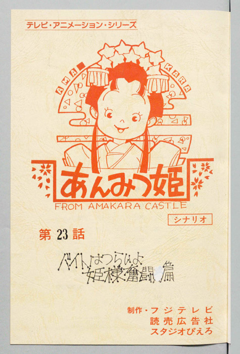 主な出演 : [(あんみつ姫)小山茉美,(だんごの守)神山卓三,(シブ茶)京田尚子,(彦左ヱ門)八奈見乗児,(オハギの局)鈴木れい子,(種介)千葉繁,(センベエ)玄田哲章,(カステラ夫人)青木菜奈,(甘栗の助)三田ゆう子,(マンジュー)渕崎ゆり子,(塩【あんみつ姫】あまから城のお姫様「あんみつ姫」は、器量がよく優しい性格をしているが、やんちゃでおてんばなところがあり、その好奇心から城の中だけでなく、城下町でも自由奔放な行動をしては周囲の人々を困らせていた。ア