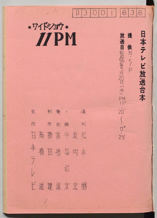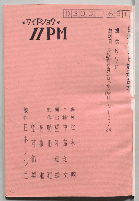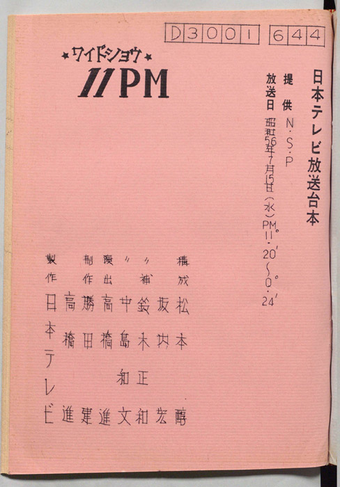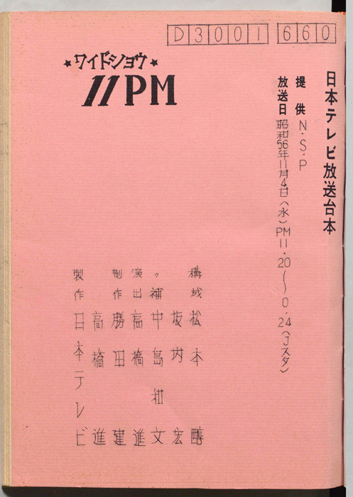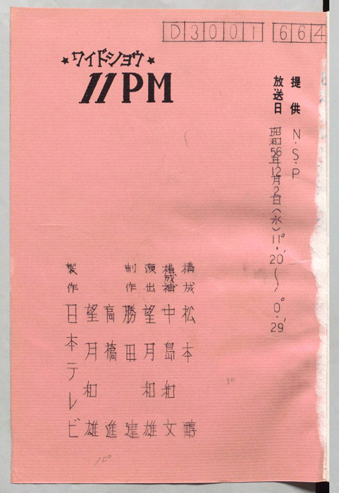 主な出演 : 愛川欽也,かたせ梨乃,今野雄二,飯塚文雄,三浦友和,永井一正,稲川淳二